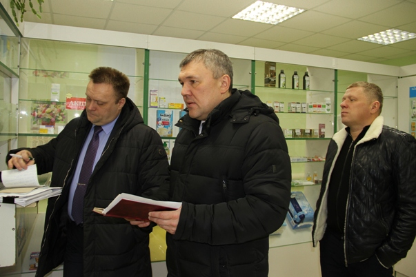 10 января 2019 года Председатель Думы городского округа Евгений Геннадьевич Быков совместно с Главой городского округа Романом Юрьевичем Валовым и депутатами Думы городского округа Натальей Геннадьевной Ельняковой и Андреем Геннадьевичем Сухановым посетили объекты аптечных организаций на территории городского округа Сухой Лог «Фармация», «Здравушка», «Имплозия», «Лекарь+», «Живика», «Вита».