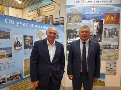 19 мая 2021 года в Храме – Памятнике на Крови состоялось открытие выставки рисунков «Цесаревич Алексей глазами итальянских детей». Председатель Думы городского округа Евгений Геннадьевич Быков совместно с заместителем главы Администрации городского округа Сухой Лог Виктором Николаевичем Игониным, начальником Управления по культуре, молодежной политике и спорту Сергеем Александровичем Ефремовым приняли участие в мероприятии. В ходе открытия выставки выступили творческие коллективы из Асбестовского городского округа и городского округа Сухой Лог, участники рассказывали о детях последнего Российского Императора Николая II, проведен телемост Россия – Италия..jpg)